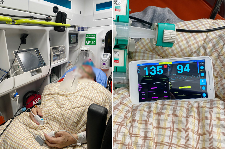 환자분께서는 한국에서 양압기마스크 적응후 이송하려고 했지만