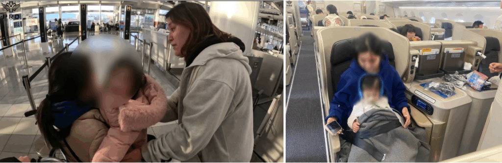 아이가 너무 어려서 엄마가 아이를 안고서