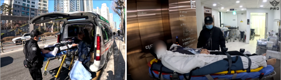 이송 내내 진통제를 유지하며 이송하였으며